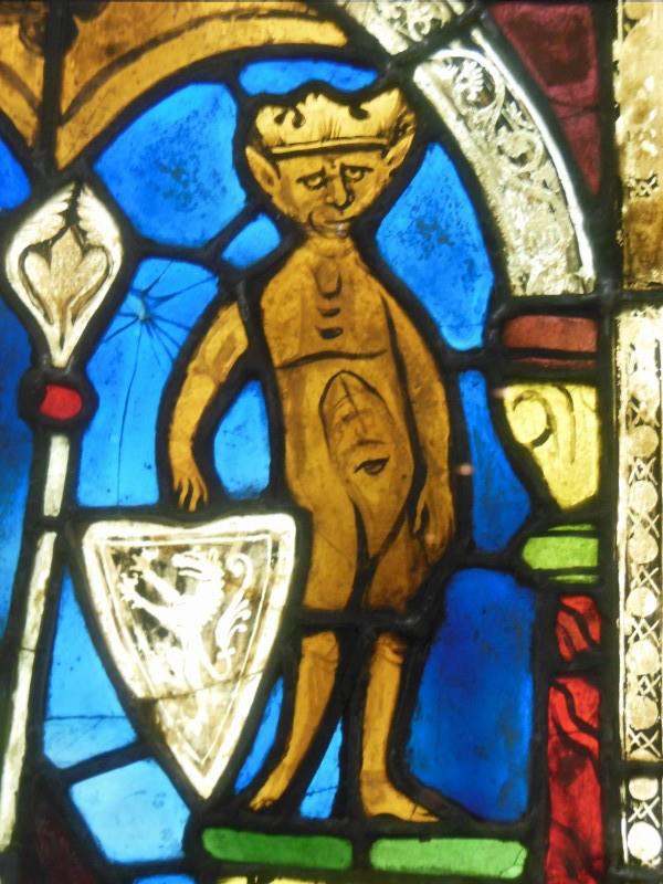 This handsome fellow (and his bitchin’ six pack) are on a medieval stained glass window in the main cathedral in Quedlinburg, Germany.