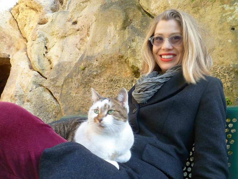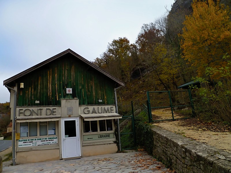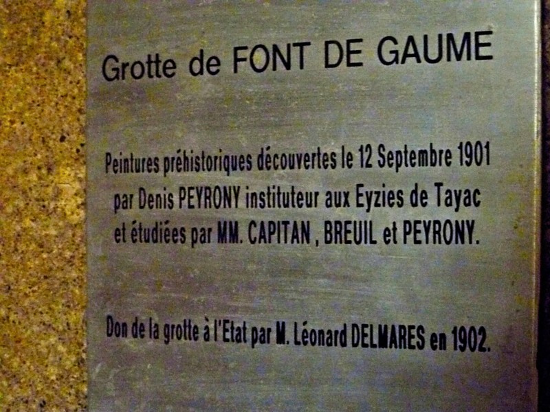 We reached the Font-de-Gaume cave in Les Eyzies-de-Tayac, Southwestern France, by train from Périgueux, followed by a 3km hike. While waiting for our reserved tour time, we visited the nearby Musee National de Prehistoire, which had some lovely prehistoric artifacts and a few fascinating, if dubiously authentic, dioramas. A sassy cat joined us while were we picnicking and begged for bits of cheese we’d purchased earlier in the morning at the Périgueux market. The cat stayed at my side while we checked in, climbed a hill to the cave’s entrance, locked up our backpacks in a cage at the entryway, and sat on my lap until the guide took our group of ten or so inside.
