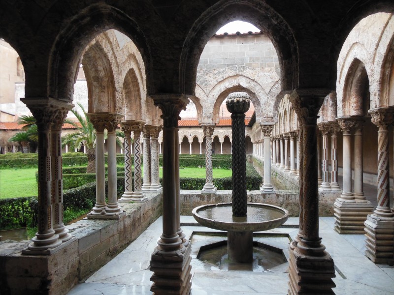 There’s a certain reaction I have, when looking though an art history book, an “Aha, there you are!” recognition that’s–let’s face it– a sense of entitlement. I study the reproduction of a building or artwork and say to myself with certainty, “I am going to go see that.” Without fail, I have always felt just that entitlement whenever encountering an image of the cloister of Monreale Cathedral in Sicily.