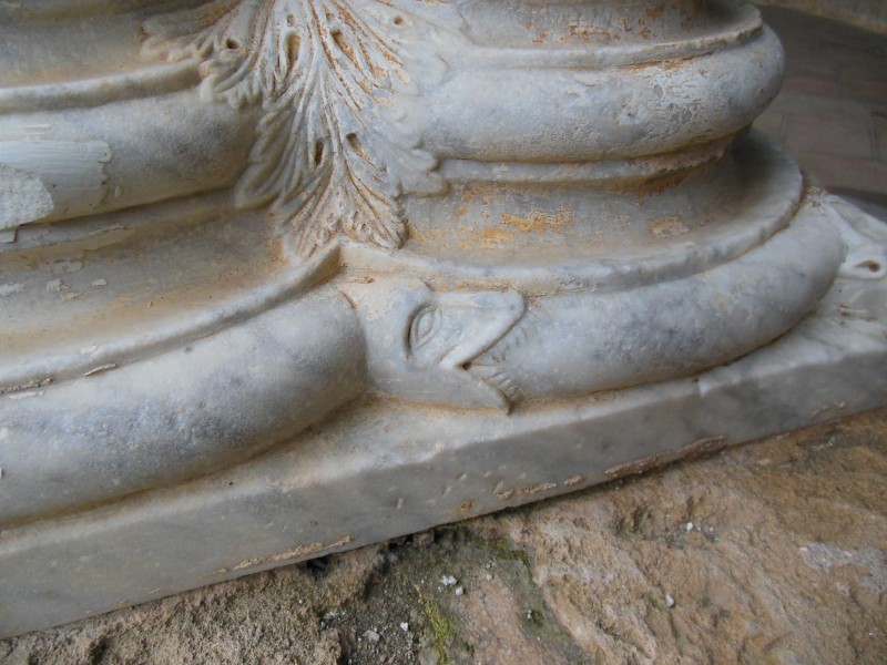 After hanging out in the cloister a while, we noticed that the columns didn’t seem to quite match up to the arcades, as if a different size was planned and there was a last minute substitution. According to my research, the columns are made from marble thought to be recycled from a sunken Roman city. On close inspection, you can see small holes in some of the columns which apparently were made by a form of underwater snail. Because, you know, it’s not cool enough to be the Romanesque cloister of a a stunning Norman-Byzantine church with world famous mosaics–you also have to be made from a sunken lost city.