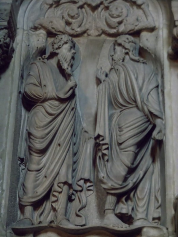 The choir screen has wonderful reliefs of 12 prophets disputing the 12 apostles. c 1230.