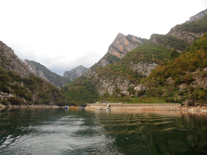Lake Koman is actually a reservoir formed inside a dramatic mountain gorge in the 1970’s and it powers a hydro electric system. We cruised along for an hour and 1/2 to the captain’s euro-pop tunes to a tiny (and by tiny I mean two houses) village that looks like this: