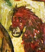 Let’s get a close up on the horse demon: he’s swallowing a human head! The man being eaten is wondering, like me, how self-described Christians would vote for a man like Trump who rejects suffering refugee children from Syria, while their most cherished religious tradition remains the story of a Middle Eastern refugee family seeking shelter for the newborn Christ child.