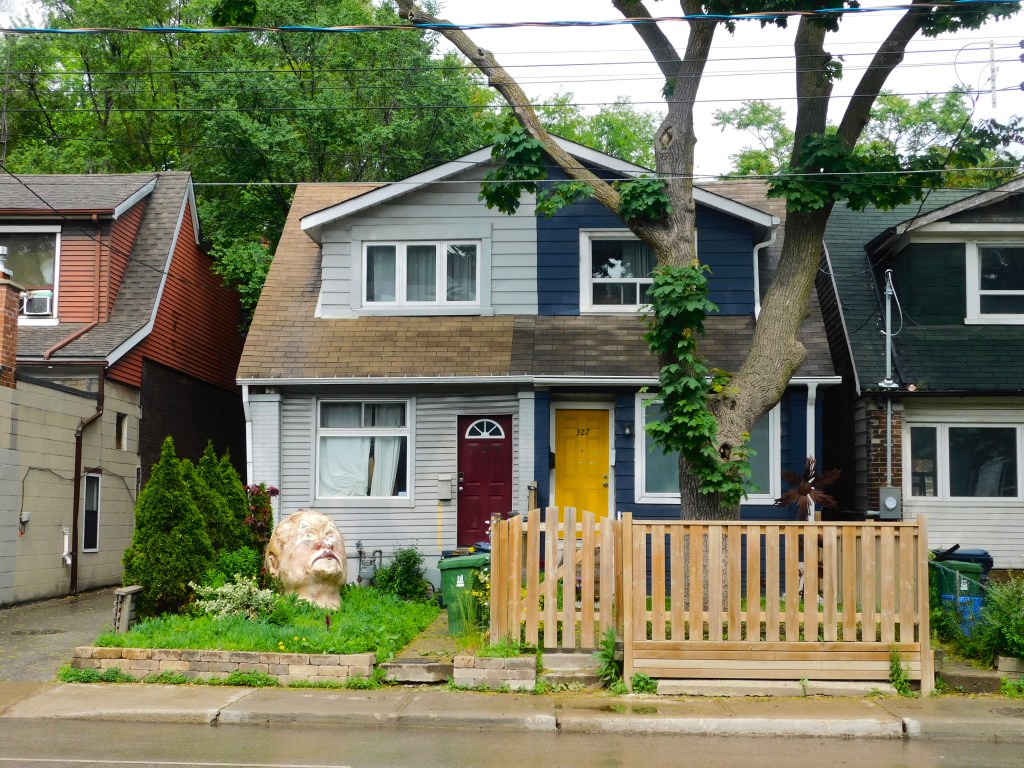 We tried to walk through as many neighborhoods as possible and I’ll have a lot to say in a later post about the architecture and urban planning of Toronto. In the meantime, here’s an example of one of the charming split houses, where each owner decorates their half without any seeming regard to the appearance of the other side.