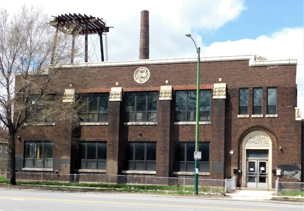 This is where we jumped off the bus, 17 miles south of our neighborhood, Rogers Park. The Parisian Novelty Company dates from 1898 and—back in the day—made trendy celluloid cases and buttons.