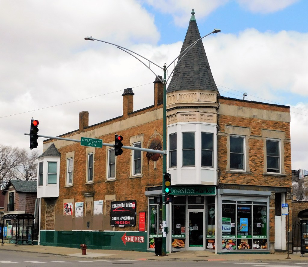 And—wonder of wonders—just across the street is a Schlitz Tied House! (The Schlitz medallion is behind the Western Avenue traffic light pole.)