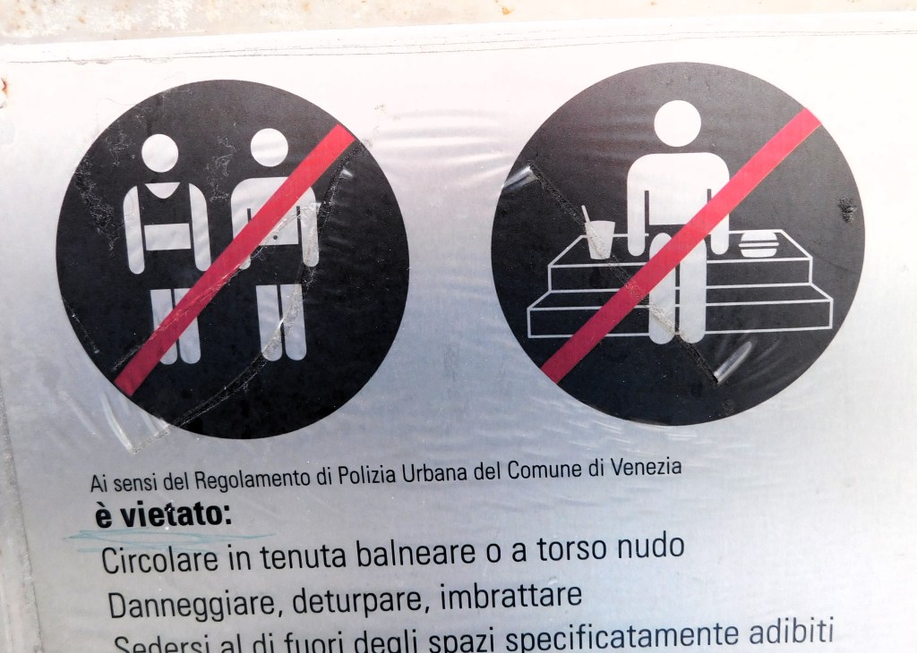 HOB is quite fit and he can climb bridges, better than me most of the time. But he gets tired, often suddenly, and needs to rest (ideally to sleep). While we had centrally located hotels during the rest of our trip, our Venice hotel was way out by the airport. My plan had been for him to nap next to me on public benches or in a quiet little park. But we couldn’t find any benches or parks.